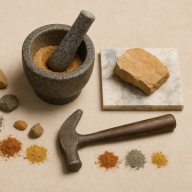 Starannie przygotowuję pigmenty – mielę, przesiewam i mieszam z odpowiednimi spoiwami, zachowując ich naturalny charakter.